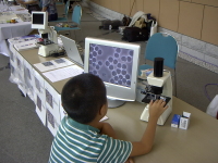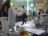 | 当社製品「位相差顕微鏡P-Scope PRO」を展示。動物の精子や血液などの観察を通し、研究にもご利用いただいておりますが、今回は製品の性能をよりご理解いただくために、希望者の血液をチェック! ※診断行為、主催者主導の採血行為は一切行っておりません |