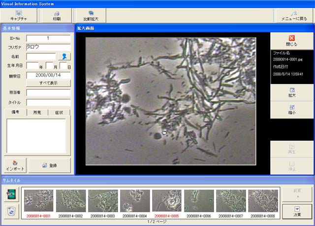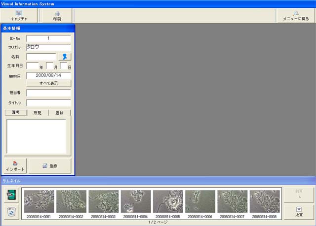 観察画像をプリンタに印刷可能画像情報など、数種類のフォームに沿った形で印刷が行えます。