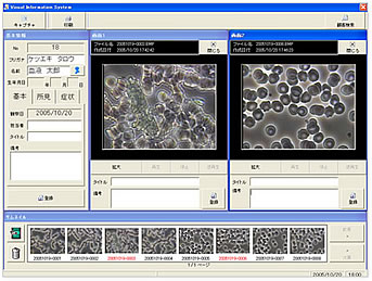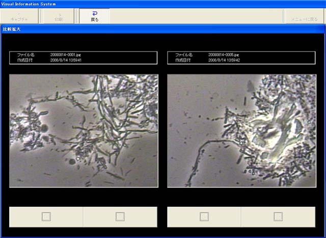 収録済み動画も静止画もリアルタイム動画(現在、接続している顕微鏡の画像)も全て比較可能